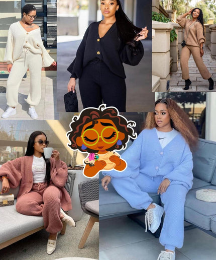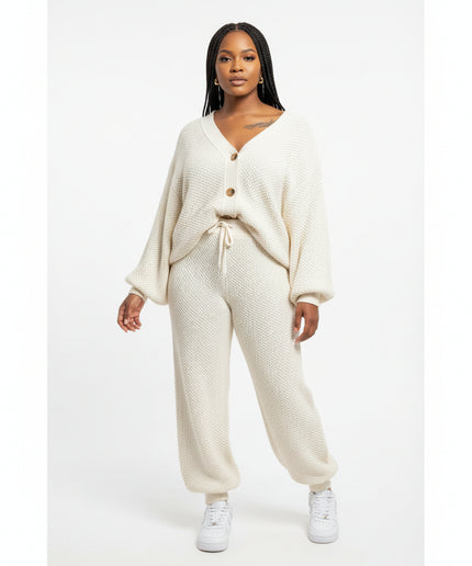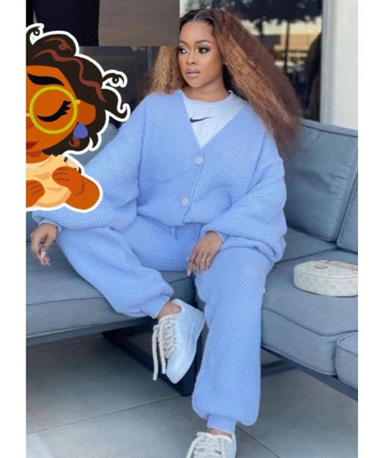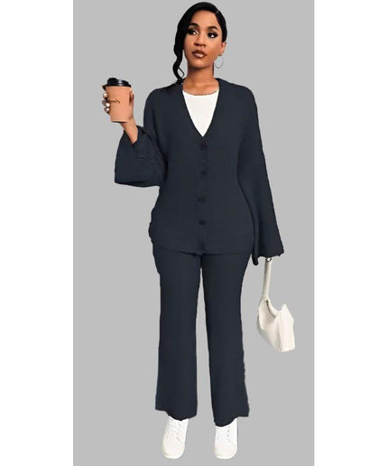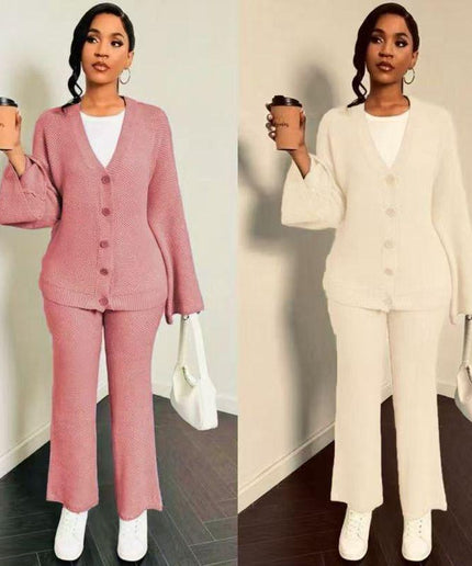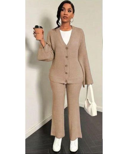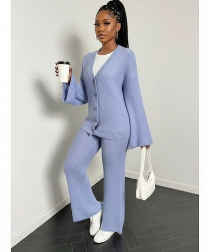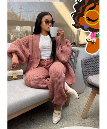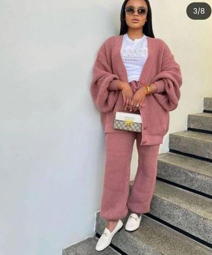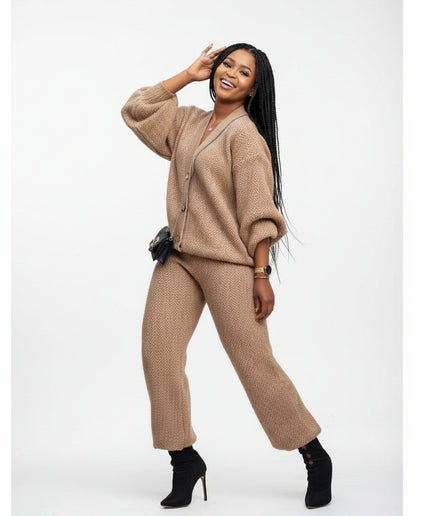 2 Piece Knitted Long Sleeved Cardigan & Loose Pants