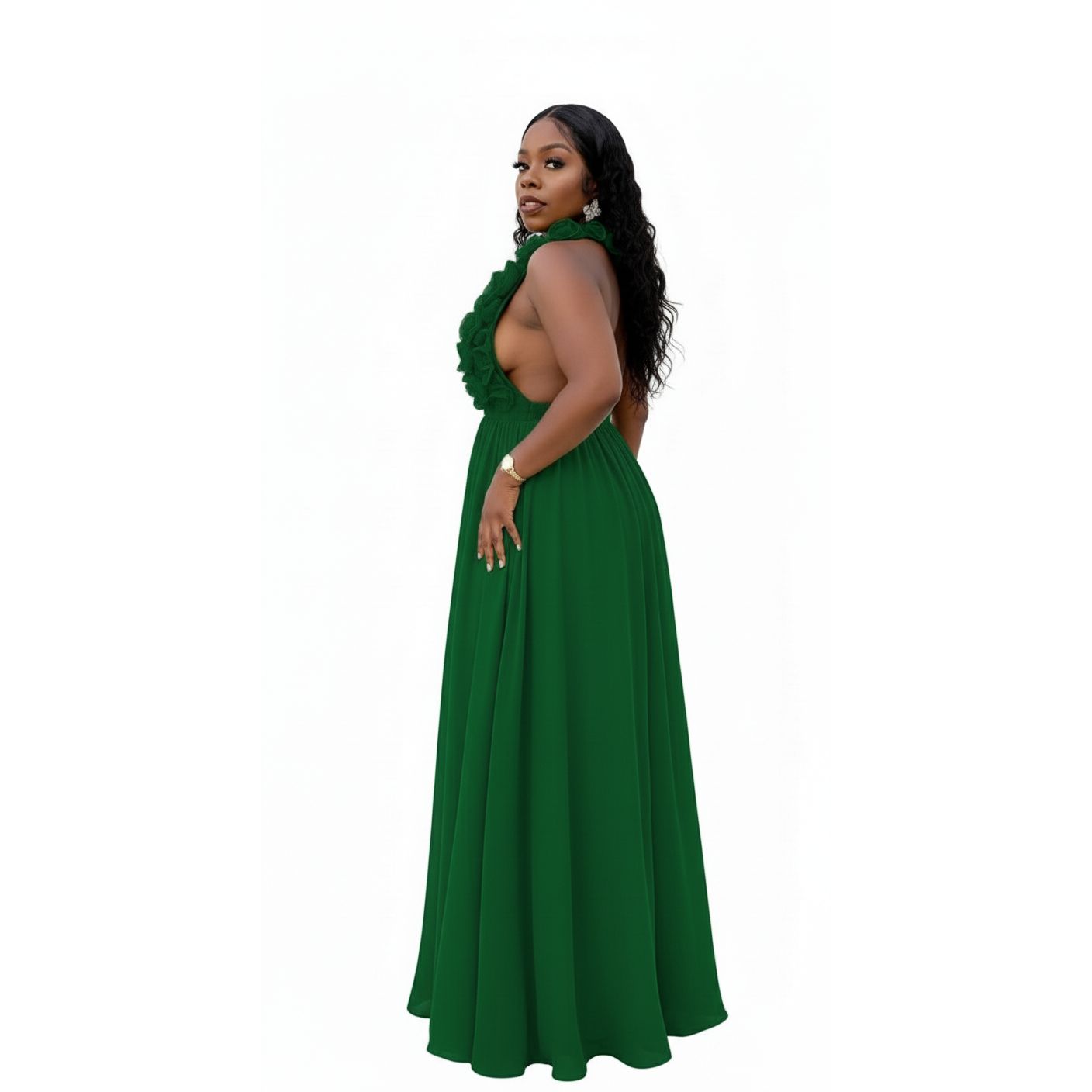 A-line 3D Flower Feather Tulle Strap Prom Dress