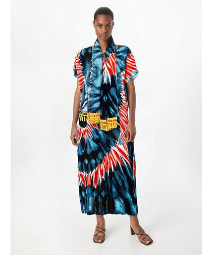 The Short Sleeve Abaya Dashiki Floral Caftan Dress is a cultural blend created for African ladies with modern sensibilities. It features beautiful sequins, tie-dry cotton, and a loose fit for ultimate comfort and style.