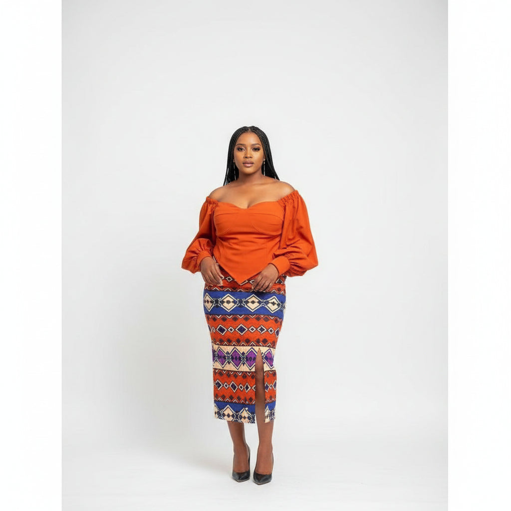 Enhance your wardrobe with this elegant and stylish African Pencil Skirt and Corset Top Set. Made with high quality materials, this set offers a modern and sophisticated look inspired by African fashion. Show off your unique style with this must-have addition to any fashionista's collection.