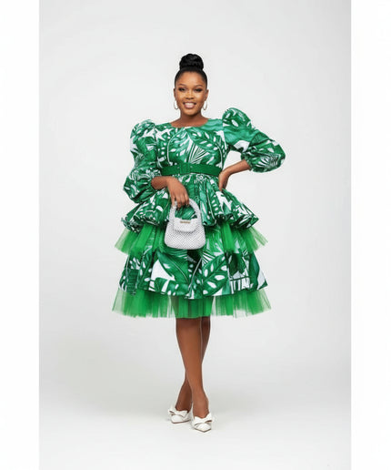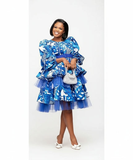 Featuring a unique African-inspired print and a flattering pleated design, this midi dress is the perfect combination of style and comfort. Made with high-quality fabrics, it's a durable and versatile addition to any wardrobe. Whether you're attending a formal event or strolling through the city, this dress will make you stand out with its short flare and elegant silhouette. Complete your look with this must-have clothing item to make a statement wherever you go.
