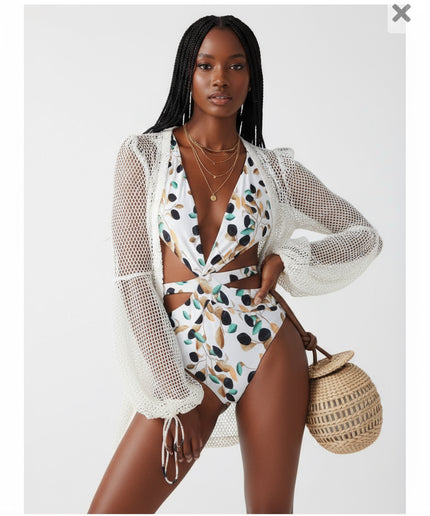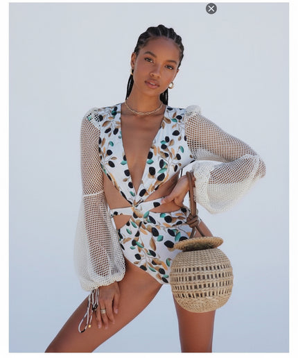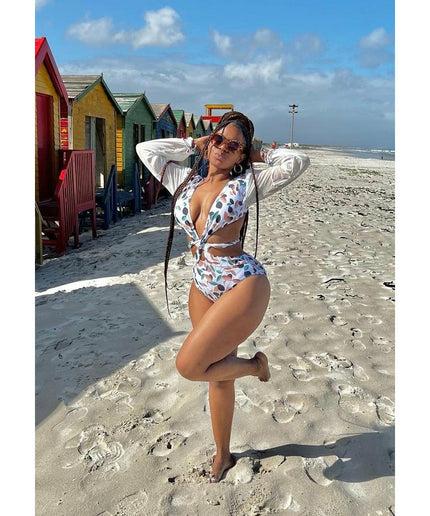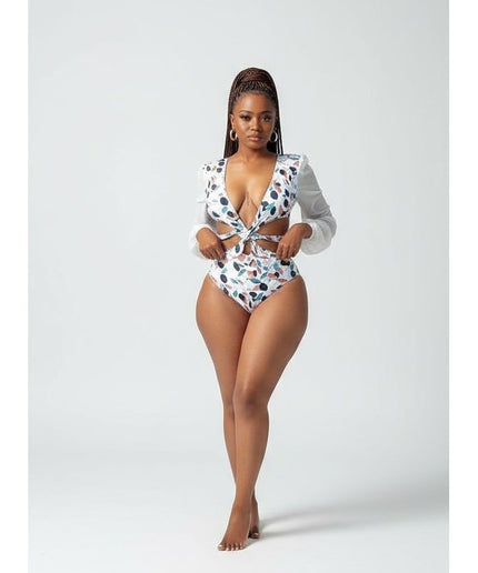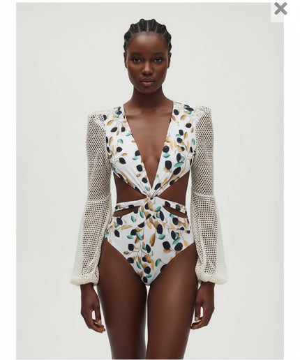 - Beautiful swimsuit with sleeves made of a delicate elastic fabric