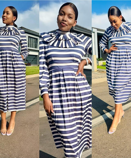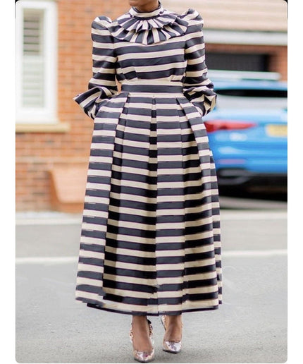This Ankle-Length Long Sleeve Patchwork Dress offers a modern and elegant look with quality construction. Crafted with long sleeves, you can dress up in this dress to make any occasion special.