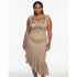 Asymmetric Cocktail Sleeve Sequin Ruffle Embroidery Midi Dress.