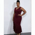 Asymmetric Cocktail Sleeve Sequin Ruffle Embroidery Midi Dress.