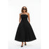 Elevate your evening look with this sophisticated bubble midi dress, designed to turn heads. The elegant off-shoulder silhouette features a fitted, ruched bodice that flatters your figure, while delicate asymmetric straps add modern charm. A drop waist creates a graceful line, flowing into a voluminous bubble hem for effortless movement and style. Perfect for cocktail events, date nights, or special occasions where you want to feel confident and chic.