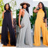 Look effortlessly stylish in this modern and elegant backless wide leg jumpsuit. Made from a lightweight material, this jumpsuit creates an effortless silhouette with a modest yet flattering neckline. A perfect outfit for special events or a night out.