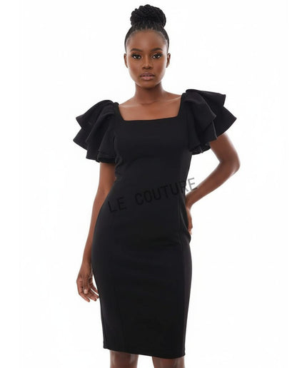 Bodycon Ruffles Sleeves Dress. The design is lightweight and comfortable, perfect for any occasion. It's made with a breathable, knitted fabric that won't shrink or pill - giving you a look that will last.