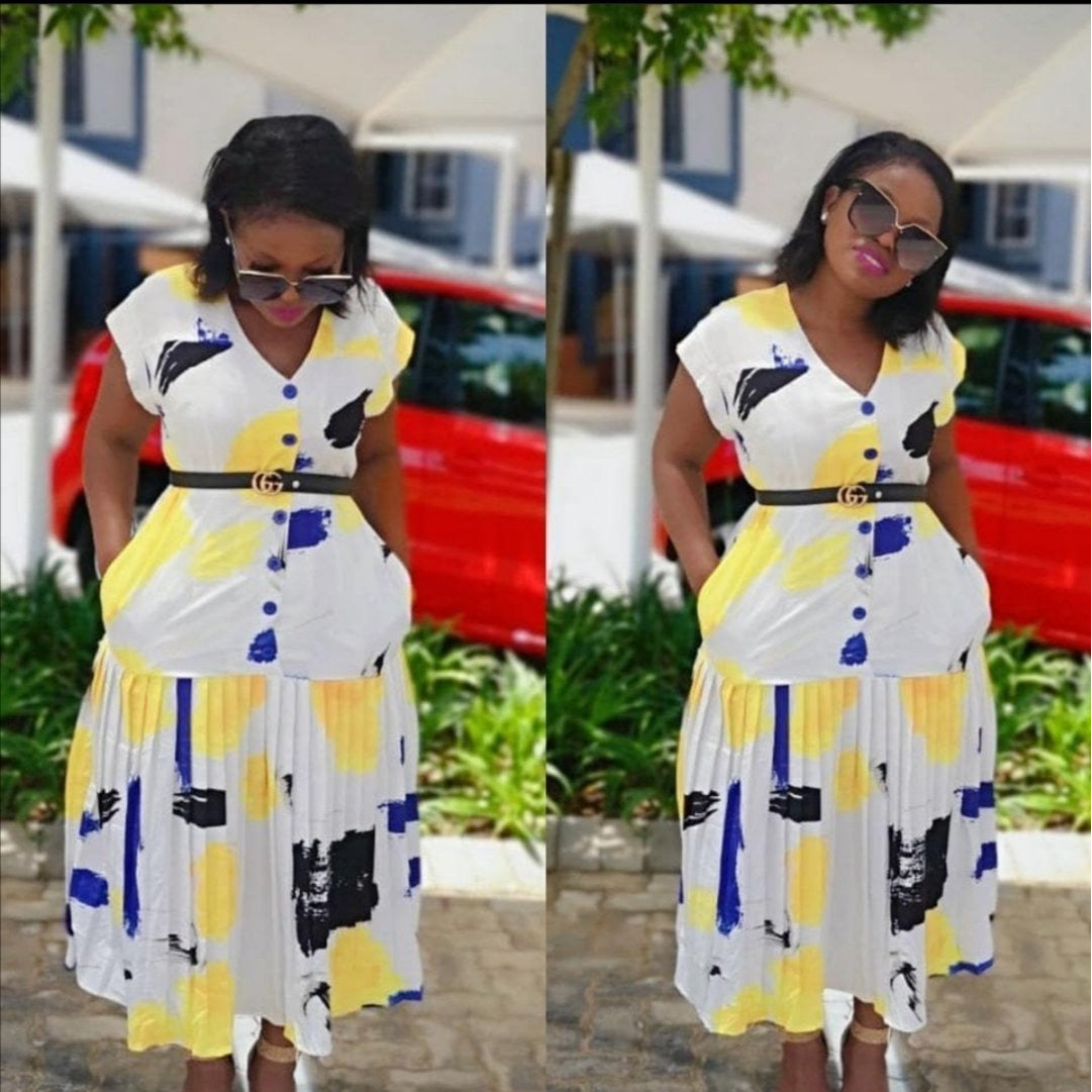 Bottom pleated sleeveless V-Neck Dress. Designed with a flattering silhouette and classic v-neckline, this dress is sure to become a staple in your wardrobe. Made with high-quality materials and precision pleating techniques, it's both stylish and functional. The perfect option for any occasion.