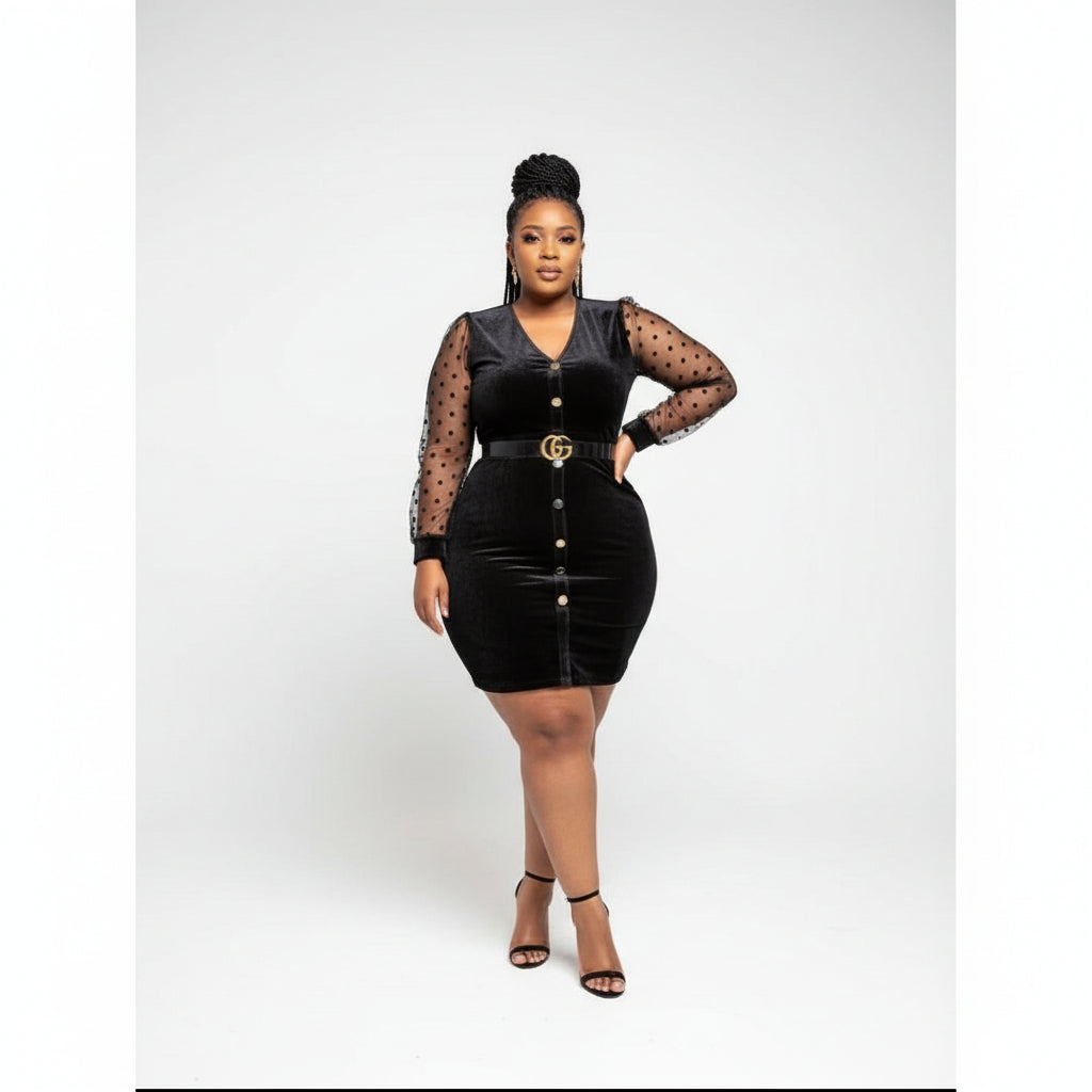 Butoon Detailed V-Neck Velvet Dress This dress features a detailed v-neck design and is made with luxurious velvet material, creating a sophisticated and elegant look. The velvet fabric drapes beautifully on the body, highlighting your figure and giving you a confident and stylish appearance. It's the perfect dress for any special occasion, and it's sure to make you stand out from the crowd.