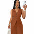 Upgrade your wardrobe with this versatile V-neck waist tied back vest and straight leg pants suit. Made with high-quality materials, this suit combines style and function for a polished and put-together look. Plus, the waist tie allows you to customize the fit for maximum comfort. You'll love the professional and sophisticated appearance this suit gives you, making it perfect for any occasion.