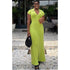 Complete your wardrobe with this versatile and stylish dress. Made with a ribbed knit material, this maxi dress features short sleeves, a V-neckline, and a slim fit that hugs your curves in all the right places. Perfect for any occasion, from a day at the office to a night out on the town.