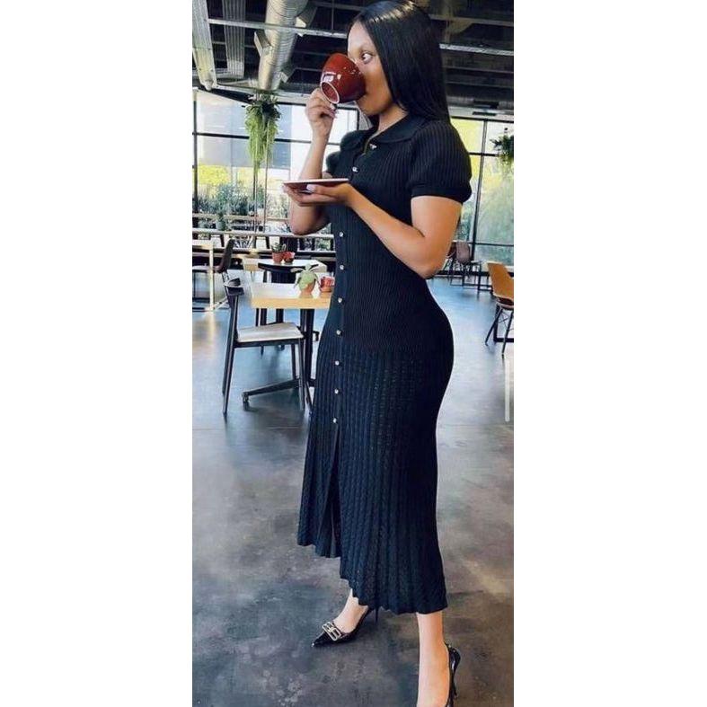 Buttons Knitting Ribbed Bodycon Midi Dress