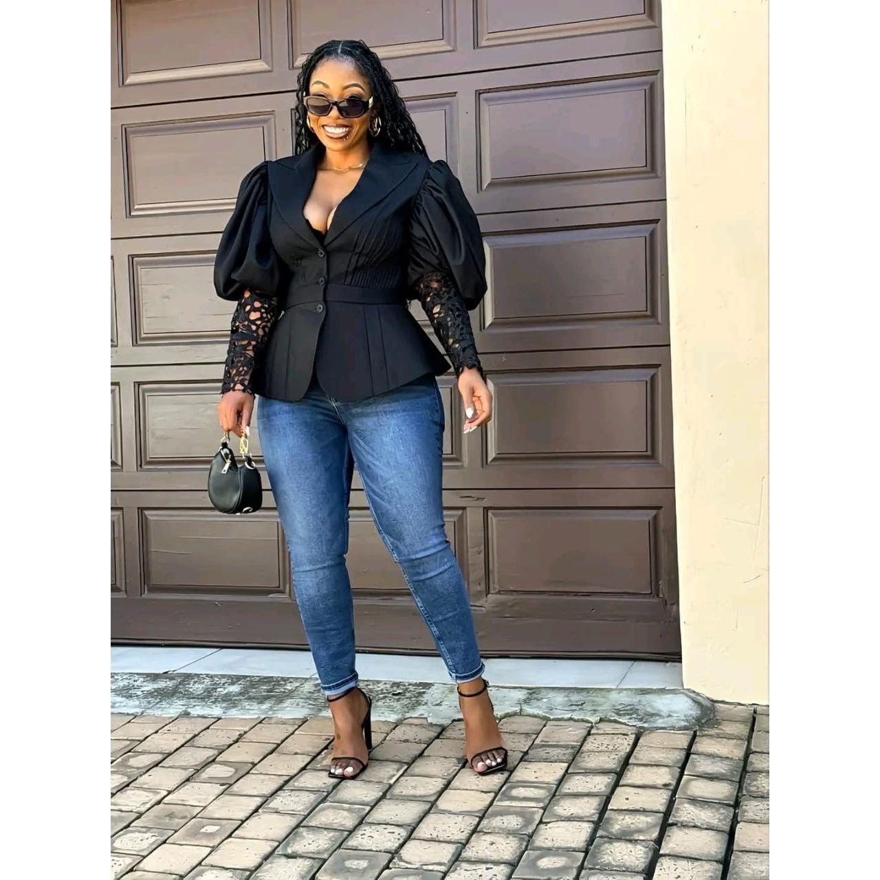 Casual Puff Sleeve Office Blazers. Confidence and comfort come together with our Casual Puff Sleeve Office Blazers. The blazers are expertly tailored to provide a polished and professional look that will make you stand out in the office. With a range of sizes and colors, our blazers cater to a diverse range of body types and styles, giving you the perfect fit and look every time. Perfect for achieving a professional and stylish office look with minimal effort.