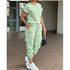 Casual Solid Color Drawstring Waist Pants with Plain Top Set