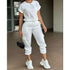 The drawstring waist allows for a comfortable and secure fit, while the solid color design adds versatility to your wardrobe. Our casual pants and plain top set is perfect for everyday wear, giving you the flexibility to mix and match for a variety of stylish outfits.