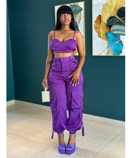 Casual Solid Color Top and Pant Set