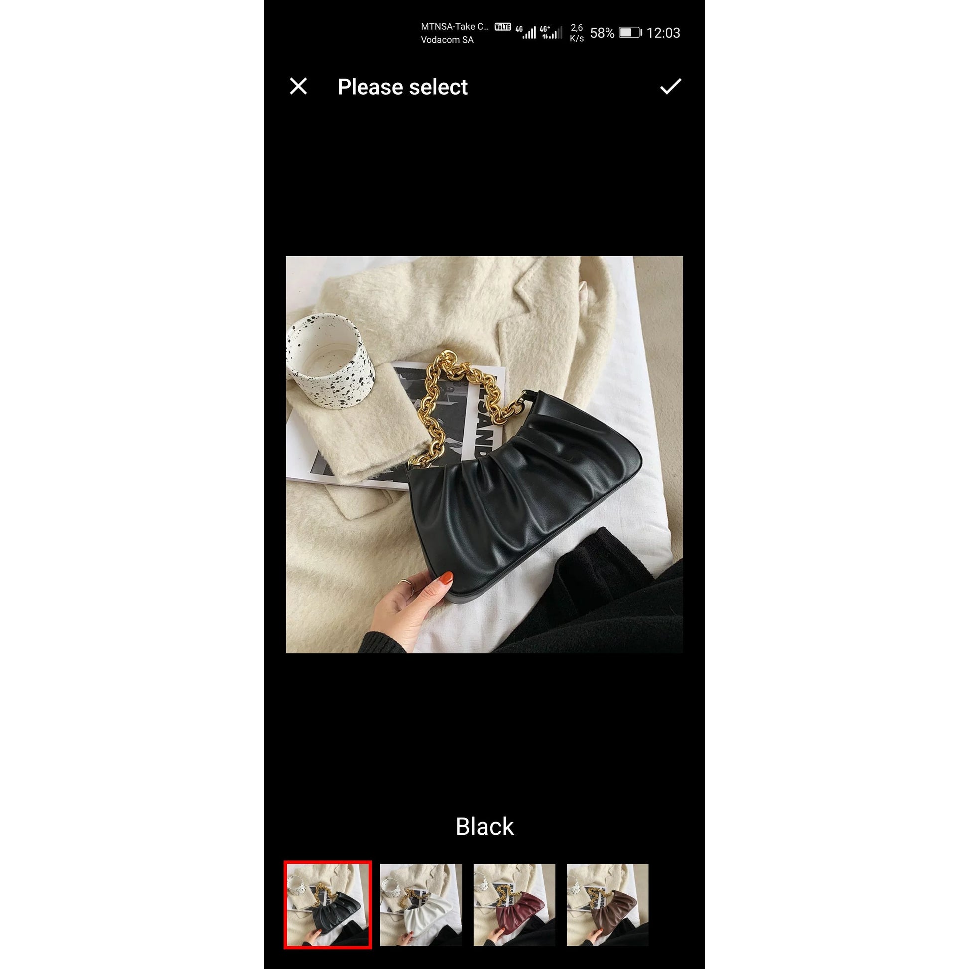 Elevate your style with our Chain Folds Designer Shoulder Bags, crafted to combine elegance with everyday practicality. Featuring a unique folded design accented with a sleek chain strap, these bags add a bold statement to any outfit. Spacious enough to carry your essentials securely, they also offer convenient shoulder wear for hands-free comfort. Perfect for both day and night, these bags seamlessly transition from casual outings to sophisticated events, making them a versatile addition to your collection. Invest in a timeless accessory that enhances your look while keeping functionality front and center.