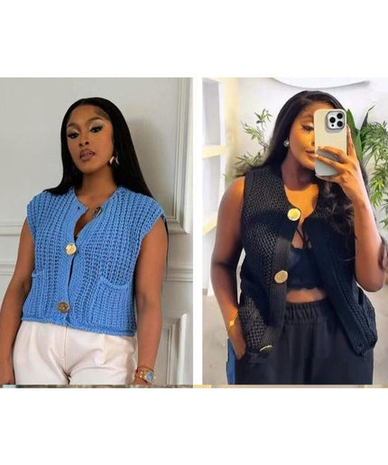 With its sleek v-neck design and high-quality ribbed knit fabric, this elegant cardigan vest from Chiquease is perfect for adding a touch of sophistication to any outfit. Offering both comfort and style, it's a versatile addition to your wardrobe that can seamlessly transition from casual to dressy occasions.