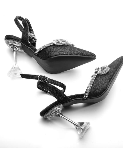 Make a statement with these Classy Rhinestone Short Heels. Crafted from a modern silhouette and encrusted in elegant rhinestones, these slingback heels make a bold statement. With effortless style and timeless sophistication, these shoes are sure to add a touch of glamour to any ensemble.