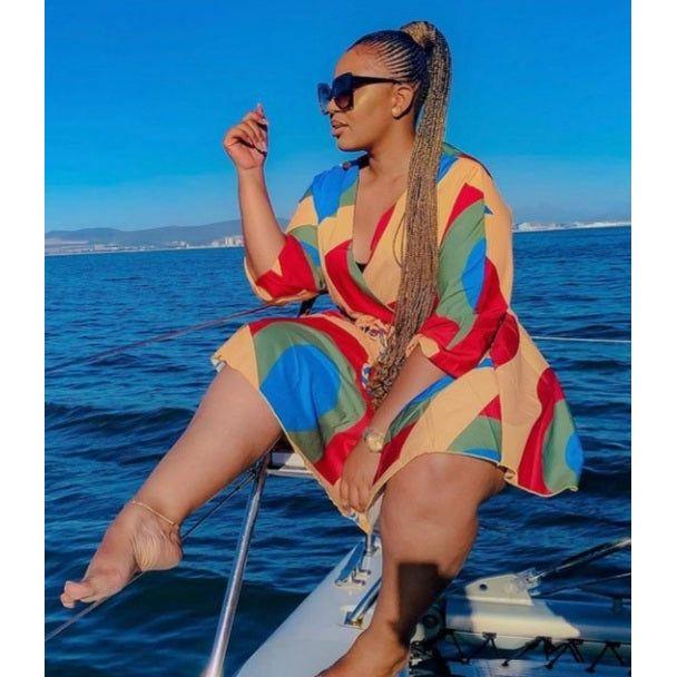 This Colorful Mini Dress fits perfectly for any modern woman's wardrobe. With its elegant V-neck and stylish pattern, it elegantly pairs sophistication and playfulness for a truly unique look. Step out in confidence and fashion with this timeless classic that will never go out of style.