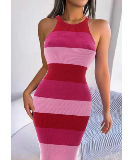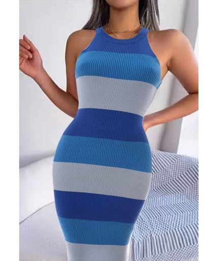 Crew Neck Sleeveless Striped Fitted Sweater Dress