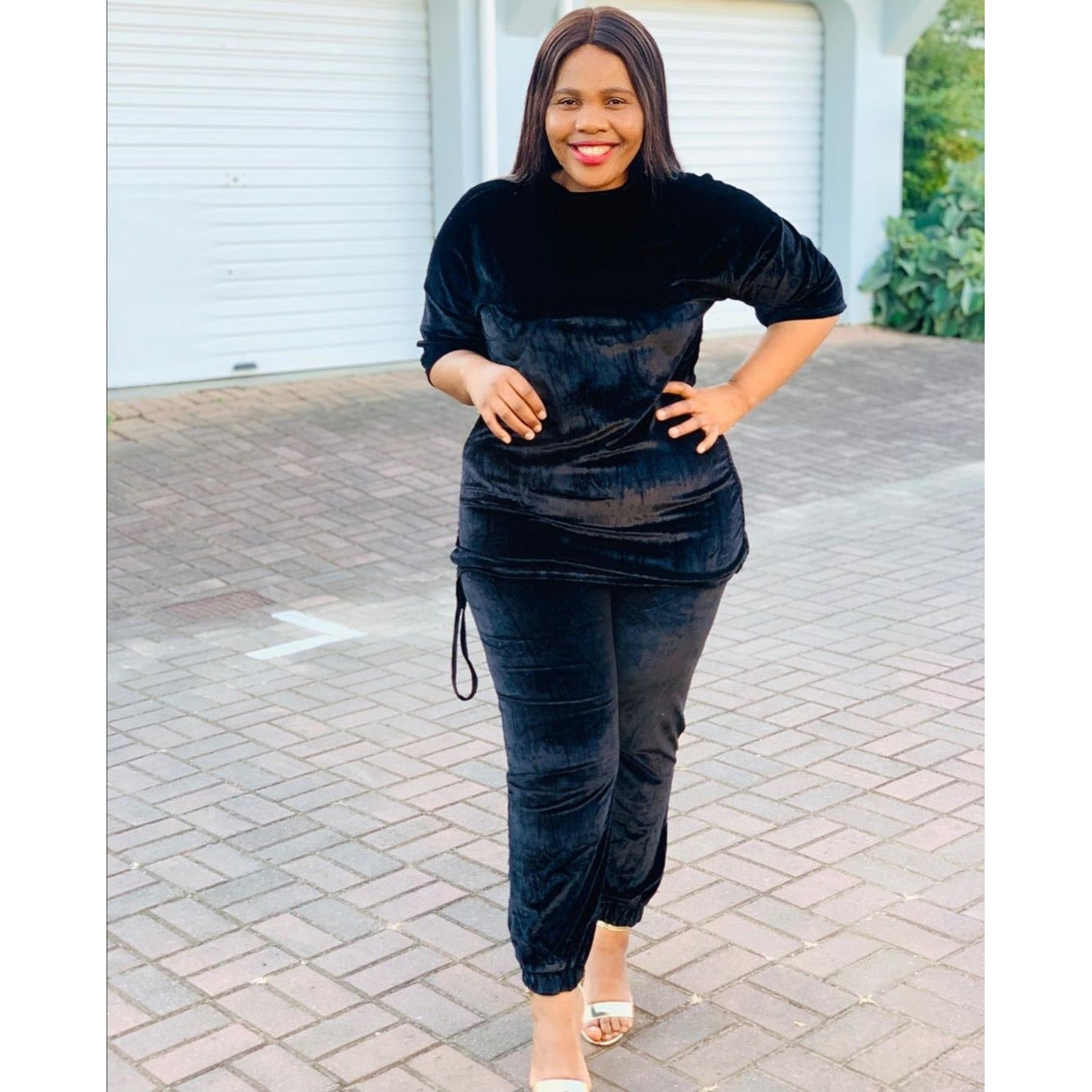 Velvet Full Sleeve O Neck Long Sleeve Drawstring Long Tops + Pants Two Piece Sets.