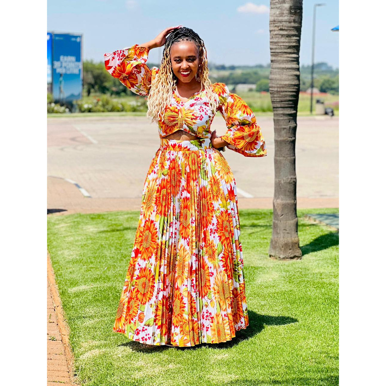 Long Sleeve Off Shoulder Crop Top and High Waisted Skirt Outfit Set