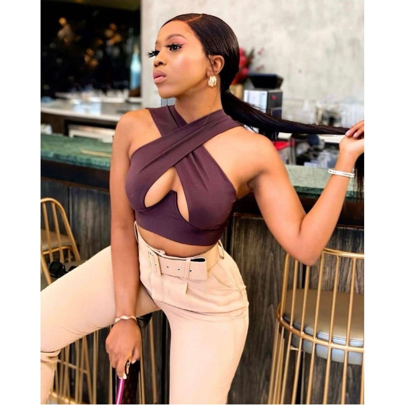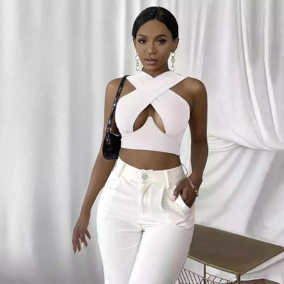 Criss Cross Tank Tops Sexy Sleeveless Solid Color Cutout Front Crop Tops