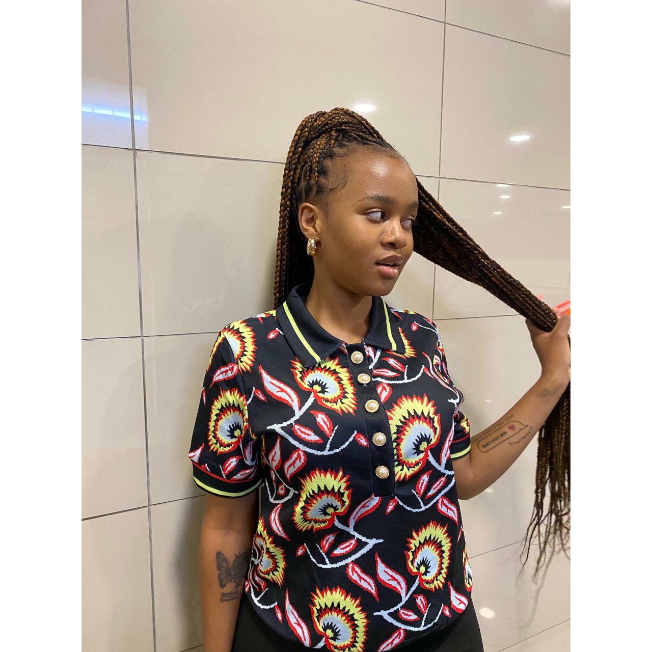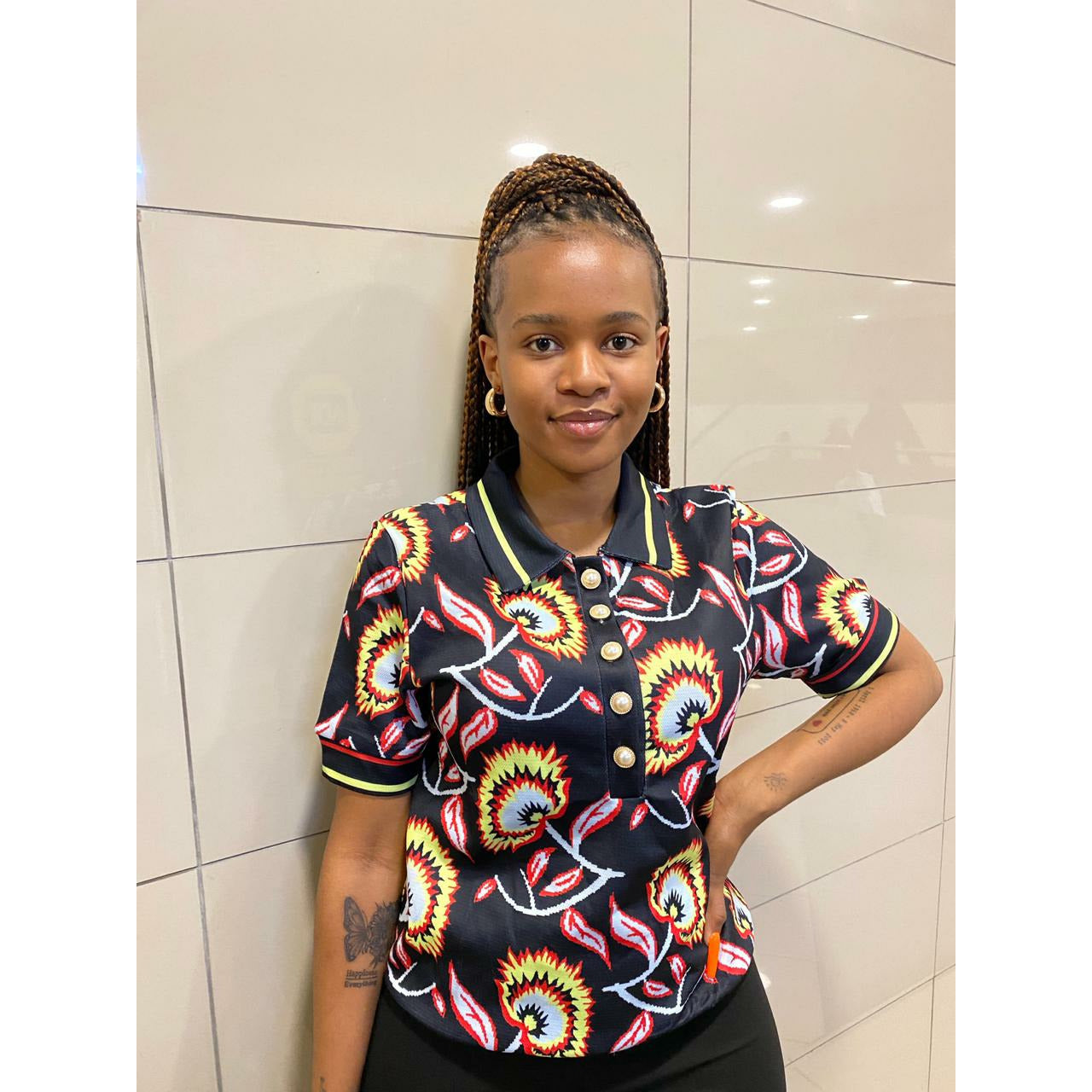 Cropped Jacquard Knit Top. This knit top features a subtle fibre pattern and has a luxurious feel to the touch, so you know you're getting quality fabric. You'll look great and feel even better. Its lightweight design makes it perfect for any season, and the breathability of the fabric will keep you feeling comfortable all day long.