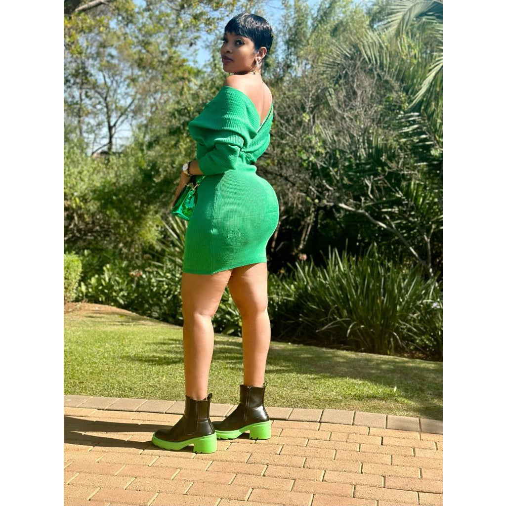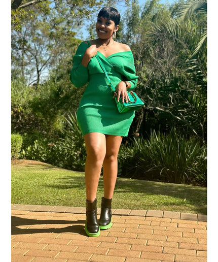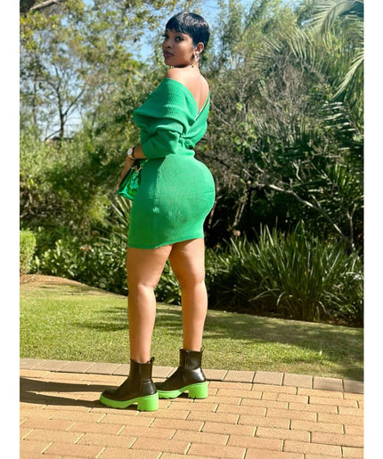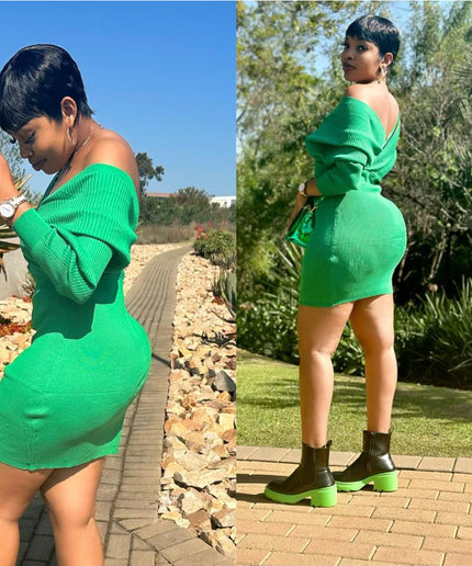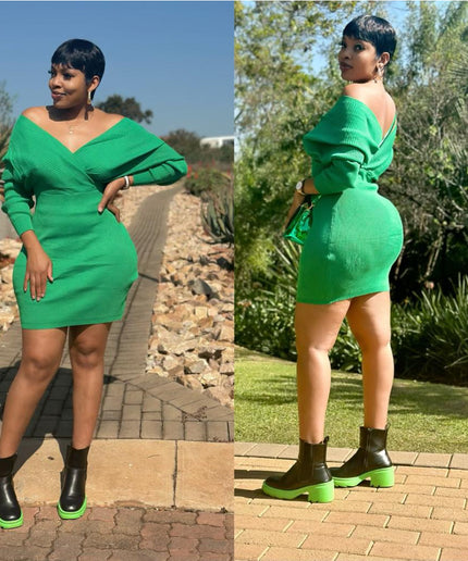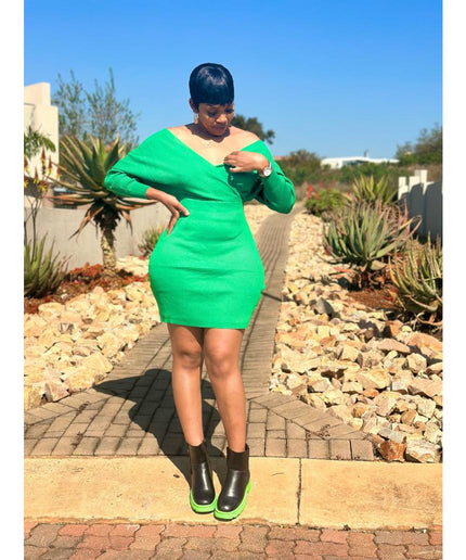 Show off your body in this fashionable, high waisted V-neck bodycon dress. Crafted with comfortable materials, this dress is designed to provide a slimming and stylish silhouette. The perfect combination of sexy and sophisticated, this is the perfect choice for any special occasion.