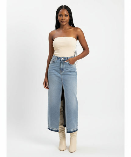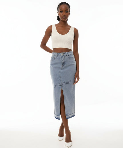 Denim Midi Slit Cut Skirt