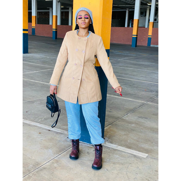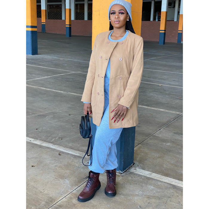 This sophisticated double breasted coat is the perfect addition to any wardrobe. Its round neck, buttoned closure, long sleeves and comfortable feel make it both chic and comfortable - perfect for a range of occasions. With its classy design, it is sure to become a timeless staple.