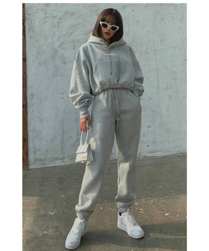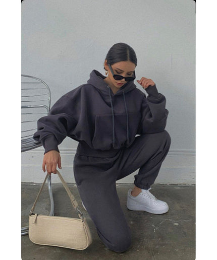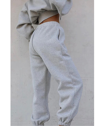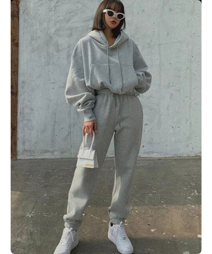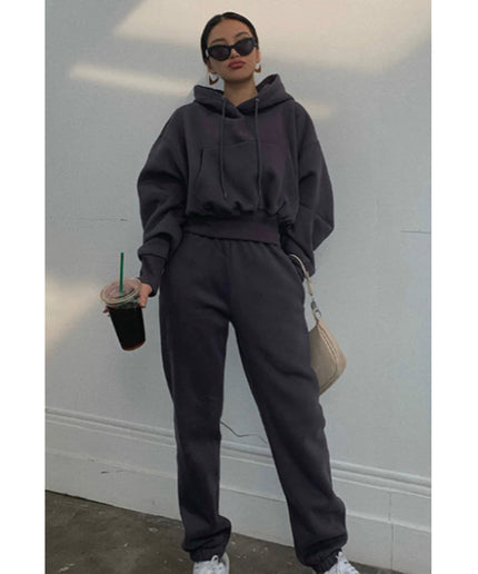This cozy yet stylish set is essential for any wardrobe. The drawstring hoodie crop top paired with jogger pants not only provides a comfortable fit but also creates a flattering silhouette. Perfect for any weather, be it a windy winter or summer stroll.