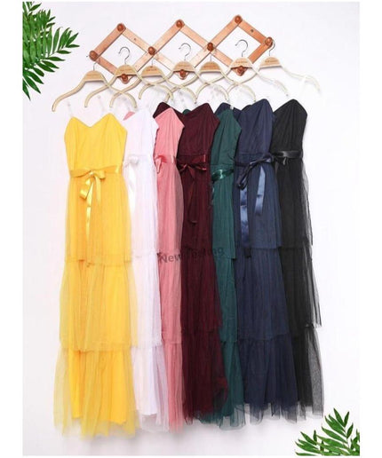 Expertly crafted with a touch of romance, this dress boasts a flattering elastic waist and airy off-shoulder design. The soft sheer fabric is perfect for a wedding or special party, making this a versatile and elegant addition to your wardrobe.