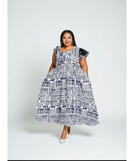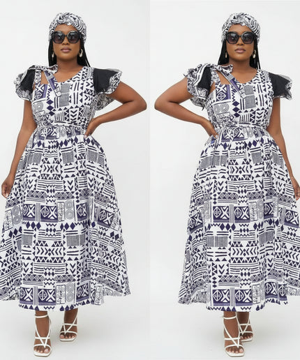 Elegant African Short Sleeve Dress This elegant African short sleeve dress is made with high-quality fabric, ensuring comfort and durability. With its unique and stylish design, it's perfect for any occasion, making you stand out in a crowd.
