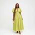 Elegant Bubble Sleeve Pleated Maxi Dress