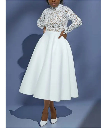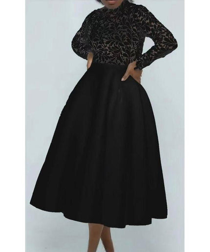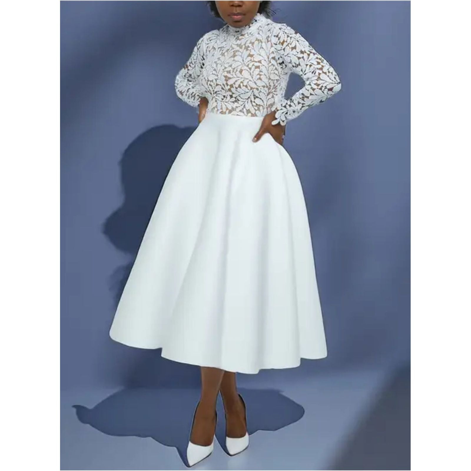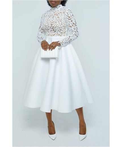 Crafted with delicate lace panels, this A-line dress boasts a timeless and elegant design that will elevate any special occasion look. With its flattering swing silhouette, it offers both comfort and style, making it a must-have addition to any wardrobe.