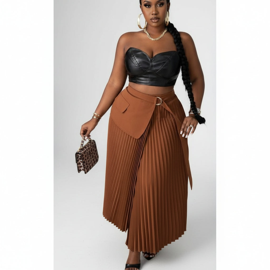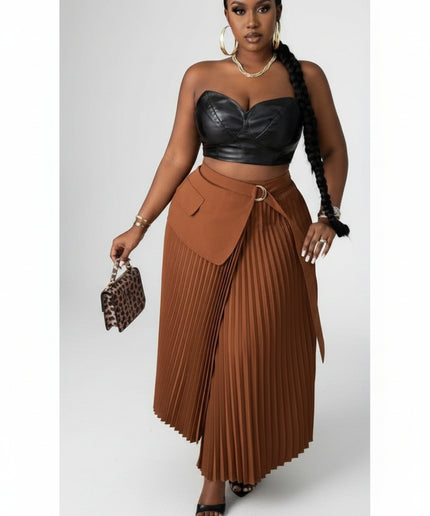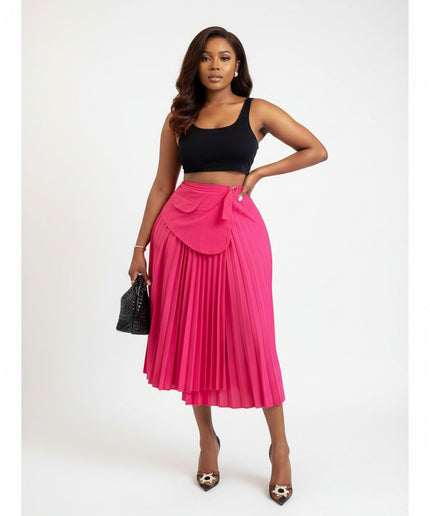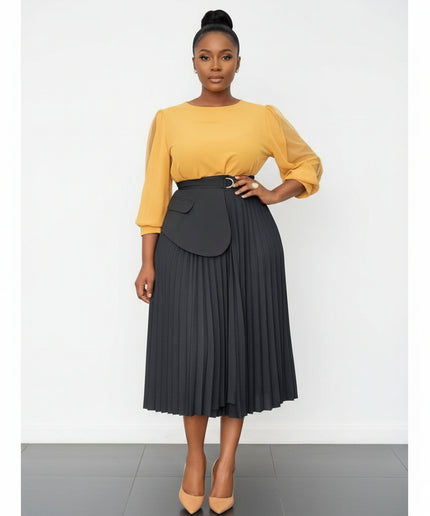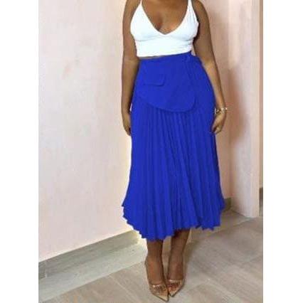 Elegant & Romantic Solid Color Pleated Waist Belt Adjustable Skirt. Turn up the romance and style factor with our elegant and adjustable solid color skirt. Featuring a pleated waist belt, this skirt will accentuate your curves and give you a classic, sophisticated look.