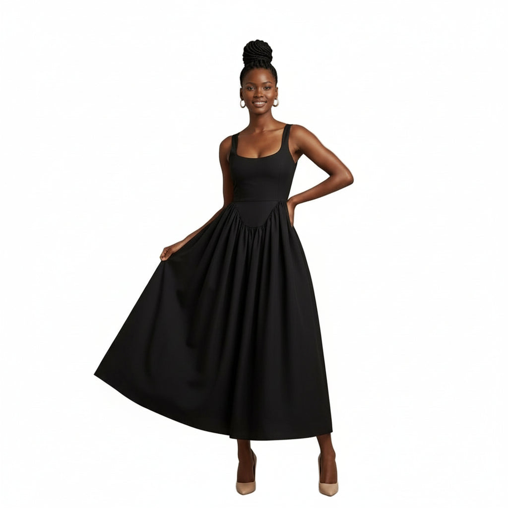 Experience effortless elegance in our Elegant Sleeveless Flare Maxi Dress. This dress features a flattering sleeveless design and a flowing flared skirt for a sophisticated and timeless look. Perfect for any formal occasion, you'll feel confident and stylish in this stunning dress.