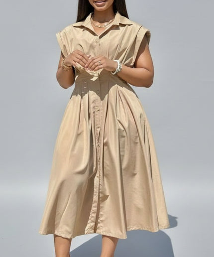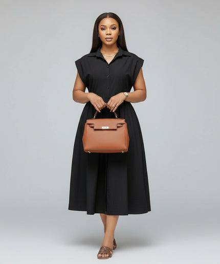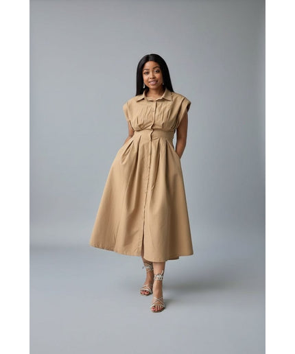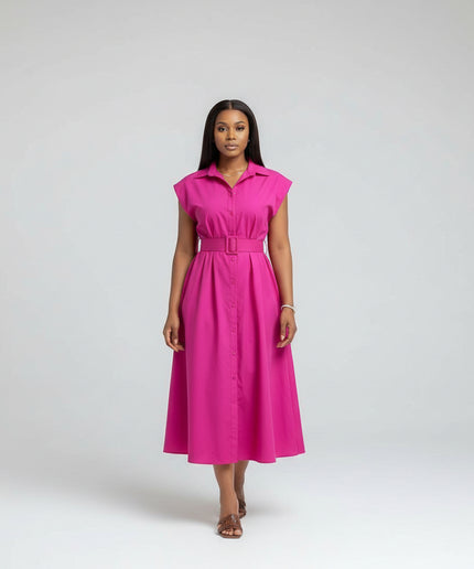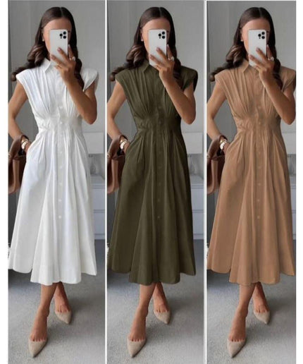 Effortlessly stylish and comfortable, this dress is the perfect addition to your wardrobe. With its flattering v-neckline and versatile midi length, it's a must-have for any fashion-forward woman looking to make a statement.