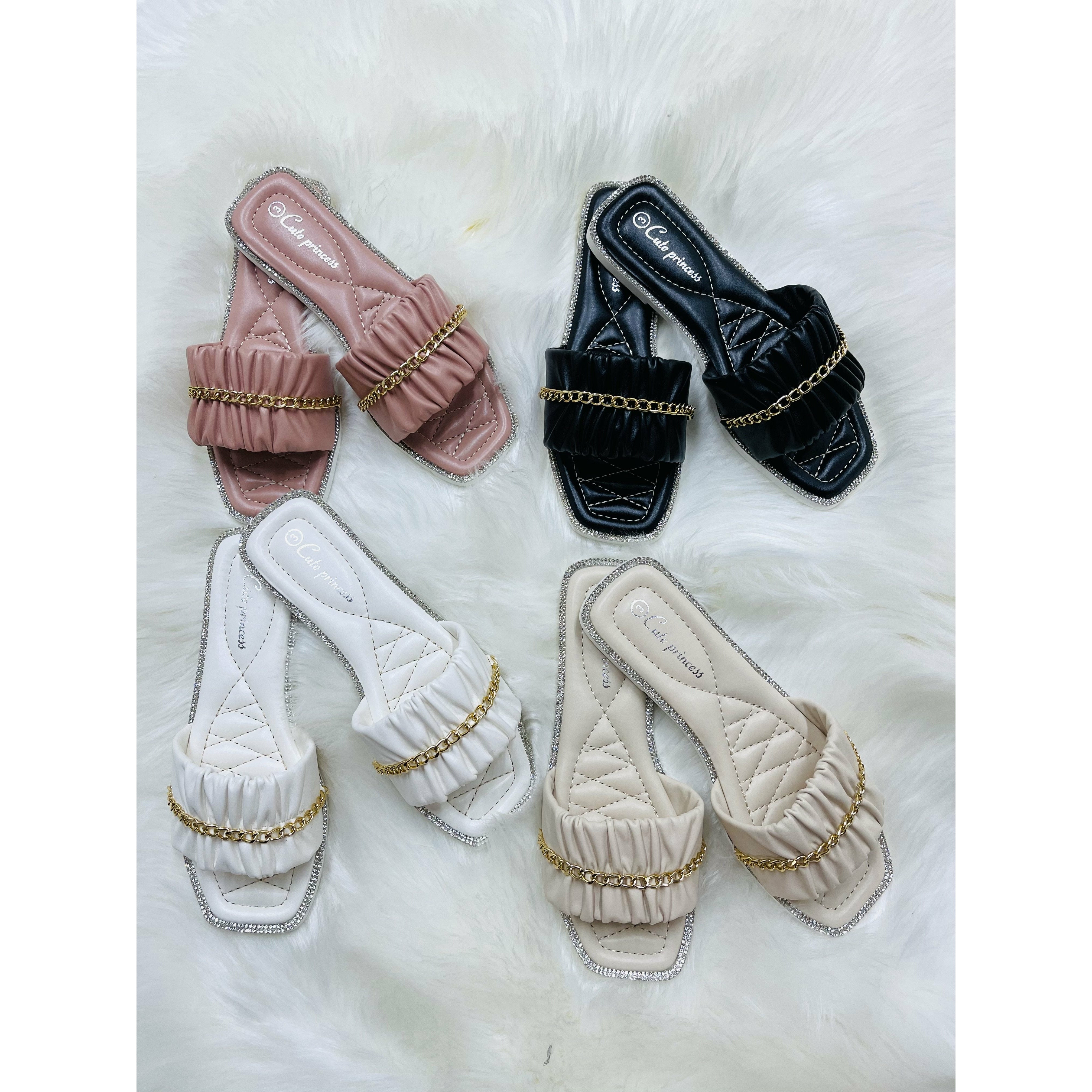 Fashion Mid-Heel Wrinkled Ladies Sandals These sandals offer all-day comfort and support, thanks to the built-in cushioned foot-bed and sturdy mid-heel. Their wrinkled leather material makes them look stylish and helps them resist wear, so you can keep feeling confident.