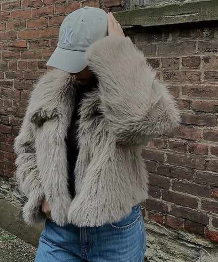This elegant faux fur long sleeve coat offers both style and warmth. Crafted with quality materials, it provides a modern and luxurious look. The perfect addition to any wardrobe, this coat is sure to keep you warm and stylish during the colder months.