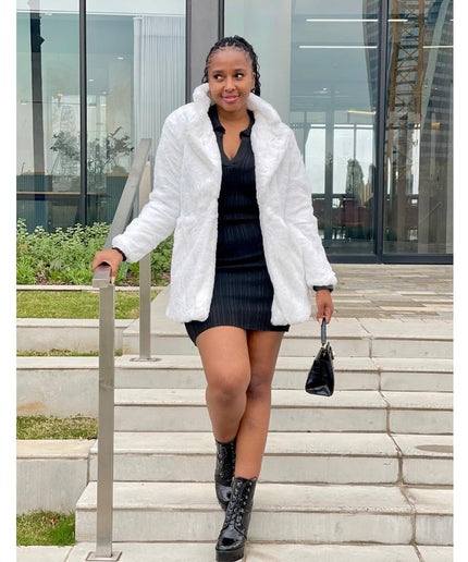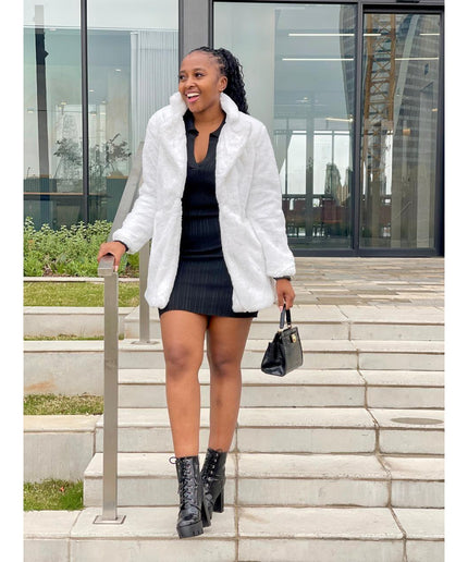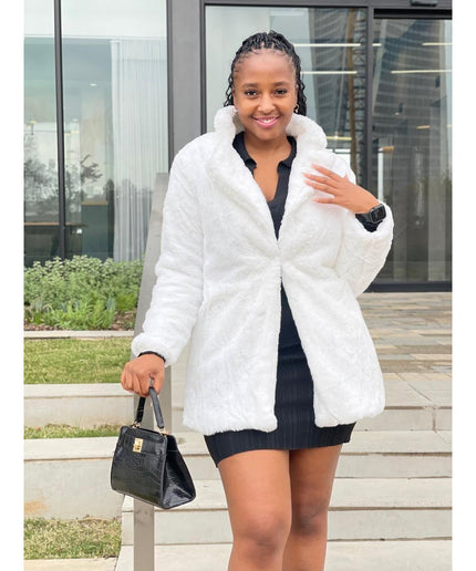 This faux fur warm coat boasts top-notch quality and modern, stylish design. Its soft material ensures maximum warmth and comfort. Perfect for staying cozy and chic during cold weather.
