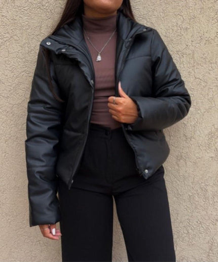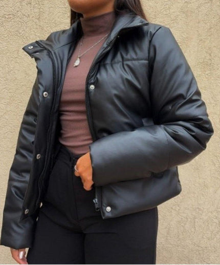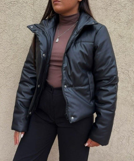 Solid Color Long Sleeve Zipper Front Casual Padded Coat