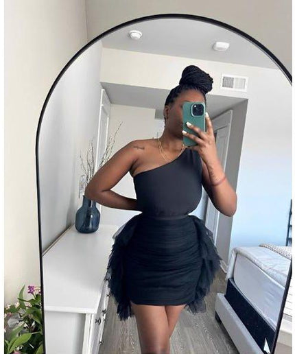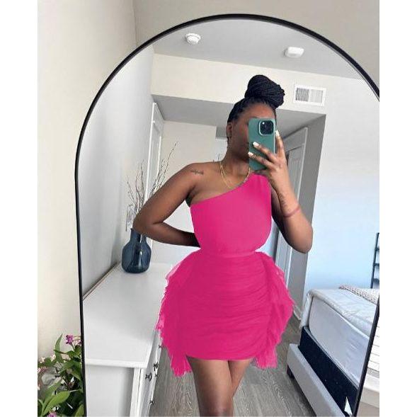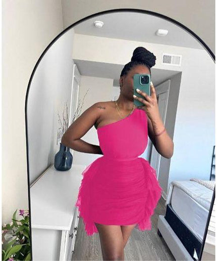 Crafted from luxurious fabric, this dress features a trendy off-the-shoulder design that's perfect for those warm summer days. The short sleeves add a touch of modesty, while the mini length shows off your legs. Make a statement at any outdoor event with this versatile and stylish dress.