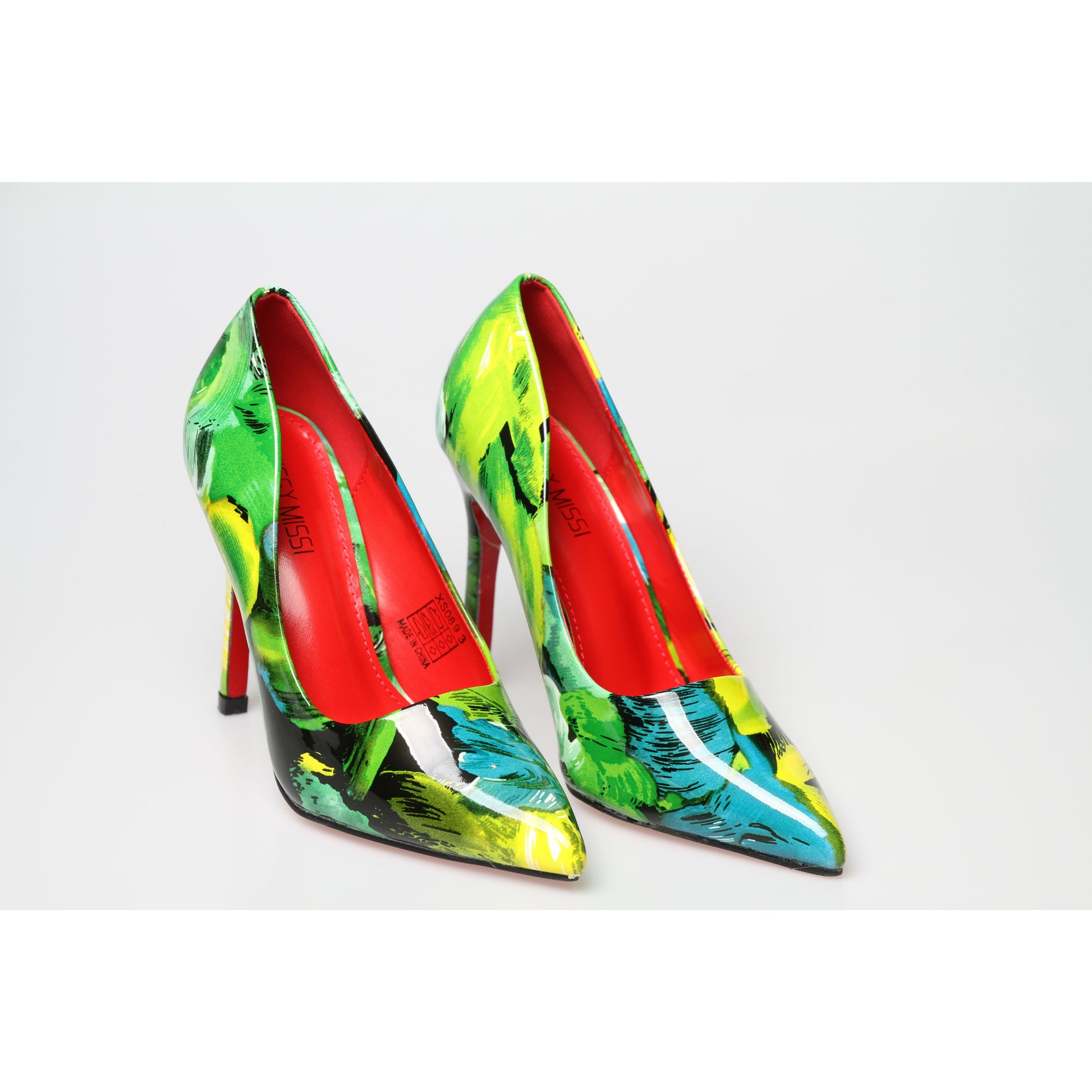 floral slip on stiletto heel The perfect combination of femininity and function, the heel features a classic silhouette with a slight pointed toe for a balanced look.