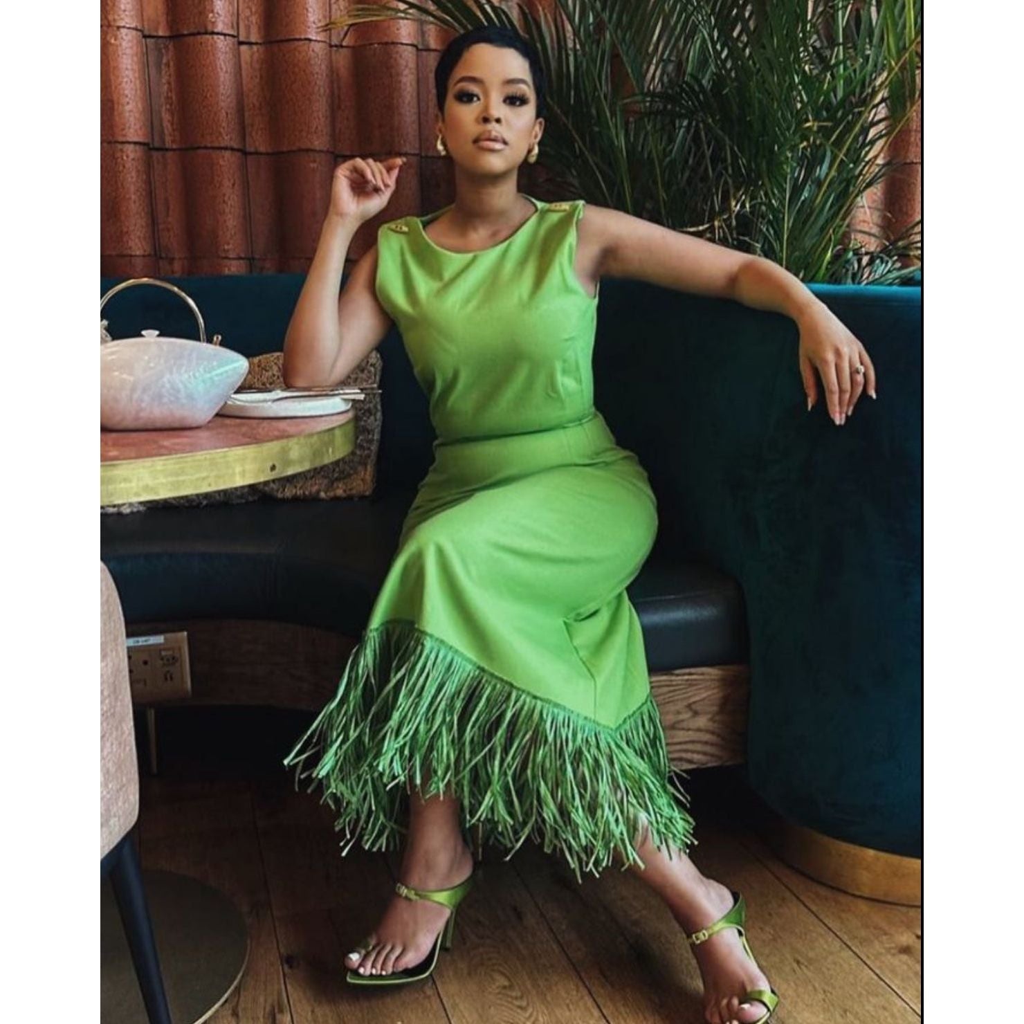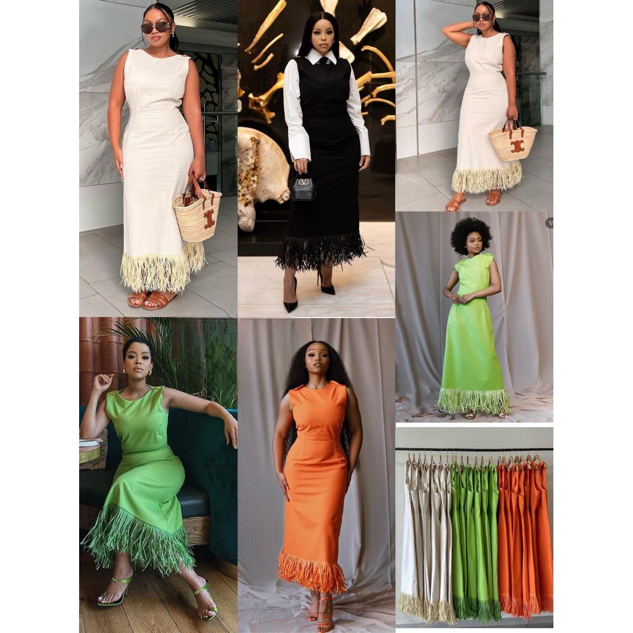 Unleash your inner goddess with our Sleeveless Fringed Bodycon Bandage Dress. Made with high-quality, form-fitting material, this dress accentuates your curves for a stunning silhouette. Its sleeveless design and fringed detailing add a touch of sophistication and playfulness to your look. Perfect for a night out or a special occasion, this dress will make you feel confident and stylish.