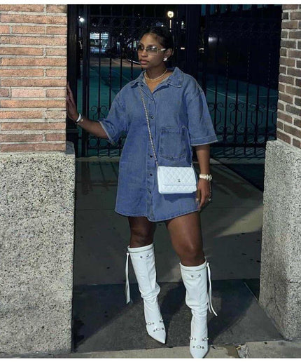 A staple for any wardrobe, our Front Button Long Sleeve Oversized Denim Shirt is made from high-quality denim that provides a comfortable yet stylish fit. With the convenient buttons in the front, you can easily adjust the shirt to your desired level of comfort and style. The oversized design adds a trendy touch to any outfit, making it a versatile piece that can be dressed up or down for any occasion. Experience the quality of our denim and elevate your wardrobe with this must-have shirt.