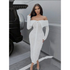 Mesh Texture Fabric Turn-Down Collar Off Shoulder Bodycon Dress